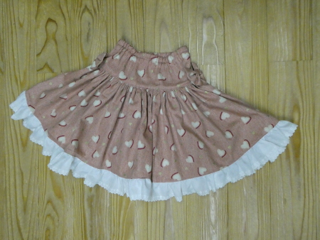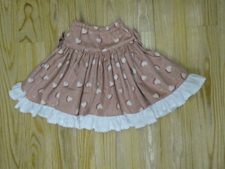 | スカパン ウエストゴム。 ゴムの入れ替え可能。 切り替えでスカート。 生地幅一杯使っていますので、ふわふわ~です。 裾に綿レースをつけました。 綿レースもギャザーたっぷり入れましたので、ひらひら~です。 |